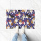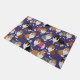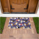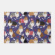 Patriotic rough collies dressed in red, white and blue with stars and stripes with dog bone and star background.