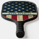 Personalized pickleball paddle with a rustic American flag print.
