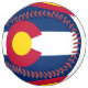 The flag of Colorado is prominently displayed on the softball, showcasing its iconic design of three horizontal stripes of blue, white, and blue, with a large red letter "C" filled with a golden disc in the center. This vibrant design symbolizes the natural beauty, mountains, and sunshine of Colorado.
