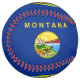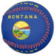 Crafted with precision and attention to detail, this softball ball showcases the vibrant colors and symbolism of the Montana state flag. The design prominently displays a blue field with the state seal in the center. The seal features a golden sunrise over snowy mountains, with the Great Falls of the Missouri River flowing beneath. The words "Oro y Plata" (Gold and Silver) are written in red below the seal.