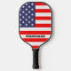 Patriotic stars and stripes American flag personalized Pickleball Paddle. Cool Birthday gift idea for pickleball lovers. Create a unique paddles for player, fan, sports coach, team, mom, dad, friend, husband, wife, kids etc. Personalize with your own name or funny text. Professional quality game rackets for men, women and kids. Red white and blue flag of America. USA pride design.