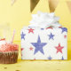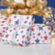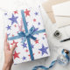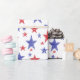 Different sized red and blue stars against a white background gives this a patriotic feeling.