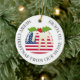 Fun, patriotic CHRISTMAS SUGAR PLUM PUDDING Ornament, incorporating the flag of THE UNITED STATES OF AMERICA. Text says MERRY CHRISTMAS FROM OUR HOME TO YOURS and is CUSTOMIZABLE so you can replace and personalize with your own greeting. Lovely gift for neighbours, family and friends.