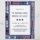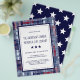 This patriotic and festive party invitation flyer features a red, white and blue madras pattern background with three navy blue accent stars. They back has a blue background with a matching white star pattern overlay. Easily customize the text for your special event. Perfect for Flag Day, the Fourth of July, Memorial Day, Labour Day, or any summer or patriotic themed event.