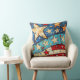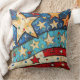 A stylized and patriotic throw pillow with stars and red, white and blue.