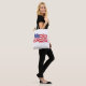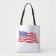 This medium size tote bag is shown with a patriotic USA Flag print.