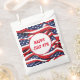 This party treat favour bag is shown in white with a festive July 4th patriotic flag print.