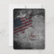 This design feature The United States with a Patriotic Flag. There are also decorative stars and a grey and black grunge background. This Wedding Invitation is perfect for Patriotic, Military and 4th of July Weddings in Shades of Red, White, Blue, Grey and Black. *