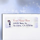 An editable return address label template with retro letters in red and blue and vintage Americana 4th of July art of a patriotic boy holding 4th of July holiday fireworks on a blue and white faux canvas background.