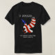 Here's a great shirt to wear to those football and basketball games! The feature is a bold red and white striped eagle ready to land. One wing is star spangled on a field of blue. Above the eagle is the text "I STAND" and below it is "TO HONOR THOSE WHO STOOD FOR US" in white.