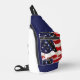 This cut and sew backpack sling bag is shown in a patriotic USA Flag print.
