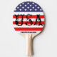 Patriotic USA ping pong paddle with American flag. Team USA. Red white and blue flag of America. Stars and stripes sport design for kids and adults. Great for 4th of July / Independence day party. Vintage typography text. Personalizable with quote or name.