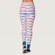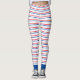 Couple mignonne de leggings; bandes rouges, blanches, bleues avec bouffée bleue à la cheville. Amusant à porter pour 4 juillet, mais aussi avec un top de style nautique pour une journée de voile !