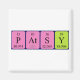 Patsy spelled out as P At S Y (Phosphorus Astatine Sulfur Yttrium) on a magnet for the scientist in you.