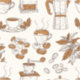 Pattern coffee and the raw materials. You start the day well with coffee, expresso or cappuccino. A hot cup of coffee is pure enjoyment. The pattern is perfect for a cafe or bar.