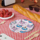 This paper plate has the cutest baby feeding bowls, a pattern to add a touch of colour and fun for the baby shower, and paper plates that can be used at the baby shower and for small babies' birthdays.
