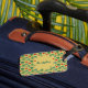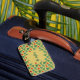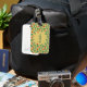 A green dominant design with red hearts and pattern filled hearts. This is a cute and eye-catchy design will make luggage stand-out on the conveyor belt. Just customize it with your family name and attach it to your suitcase!