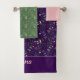This bath towel boasts a vibrant watercolor design adorned with radiant green leaves. Personalization with a name adds a unique touch. Whether at the beach or drying off post-swim, this towel serves as a bold and distinctive accessory for any outing.
