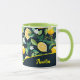 Cute Colourful Rustic Lemon Citrus Yellow and White Chic Summer Tropical Greenery Leaves Fruit Pattern Monogram Mug. Easy to customize with your text and photos!