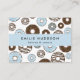 Cute, fun and adorable business cards with blue and brown doughnuts. Modern and trendy design, perfect for cake shops, pastry shops, doughnut bars, bakeries and dessert bars.