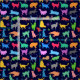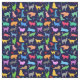 Pattern Of Colourful Cats. Navy Blue Background Fabric