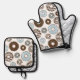 Pattern Of Doughnuts, Blue Doughnuts, Brown Doughn Oven Mitt & Pot Holder Set