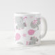 Pattern Of Elephants, Cute Elephants - Pink Grey Large Coffee Mug