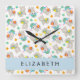 Pattern Of Llamas, Alpacas, Flowers, Your Name Square Wall Clock