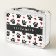 Pattern Of Paws, Black Paws, Red Hearts, Your Name Metal Lunch Box