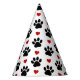 Pattern Of Paws, Dog Paws, Black Paws, Red Hearts Party Hat