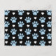 Pattern Of Paws, Dog Paws, Blue Paws, White Hearts Postcard