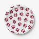 Pattern Of Paws, Dog Paws, Burgundy Paws Paper Plate