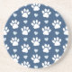 Pattern Of Paws, Dog Paws, White Paws, Blue Hearts Coaster