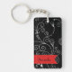 Pattern Of Swirls, Black and White, Your Name Keychain