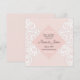 Wedding invitation with white pattern ornament on pink your wedding details with a white border of frame in soft pink. Personalize the card with your information in grey lettering.