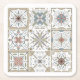 Coasters with a series of nine (9) different Spanish-style tiles in neutral coloured, mosaic pattern.