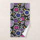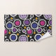 Hand Towel with Colourful pickleballs and white circles on black background. Perfect as a gift for a fashionable pickleball player.