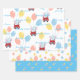 A set of three flat sheets of wrapping paper with different designs that complement each other for a set of gifts. The design contains customizable text that can be changed to your own liking.