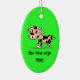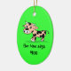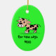 Patterned Cartoon Moo Cow on Green Ceramic Ornament