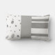 This accent pillow has an abstract pattern of dots and stripes in a soft grey and white design for home decor.