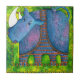 A colourful patterned rhino watercolour ceramic tile. Art by Julie Nicholls©