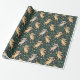 "Patterned wrapping paper featuring illustrations of raccoons and leaves on a green background. The image shows both unrolled and flat views."