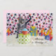 High quality, beautifully presented. The scalloped edge is a nice touch. Choosing a post card style birthday greeting adds a nice twist from the traditional folded card. Colours are soft pastel shades that gives a simple elegant look for this card. The high definition print option with semi gloss really works well for this card. Note: my photo may not capture the prettiness of this card. The reverse of the card highlights the image I chose for a pet themed card nicely. Just what I expected. 👍