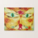 Paul Klee Cat and Bird puzzle. Oil painting on canvas. Swiss German artist Paul Klee revolutionized modern art by working in a variety of different styles. Though much of his work engaged serious themes, Cat and Bird is a fun and beautiful painting featuring vibrant red, green, blue and brown highlights. A great gift for fans of Paul Klee, cats, Expressionism, and animal painting.