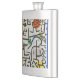 The product is a good size and came exactly as it was pictured. The lid is not attached to the flask, which could be dangerous on drunken nights... The print came out surprisingly well and looks very sharp. Would definitely recommend.