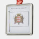 I was impressed by the quality and size of the ornament. Metal framing and design were perfect. Definitely recommend any of the metal framed ornaments. I ordered different ones all of the same quality and personalized professionally. Perfect No pictures as they were all gifts