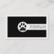 Black Vet/Veterinary Clinic, paw minimalist business card with qr code on the back that features a black paw on a white circle. Black background with white borders. The back includes a QR code for more info. A great design for veterinarians or pet clinic/hospital services.