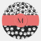 Paw Pattern, Dog Paws, Black and White, Monogram Classic Round Sticker