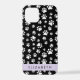 Paw Pattern, Dog Paws, Black and White, Your Name iPhone Case