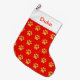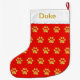 Cute golden paw pattern on red background Christmas stocking. Name can be personalized.